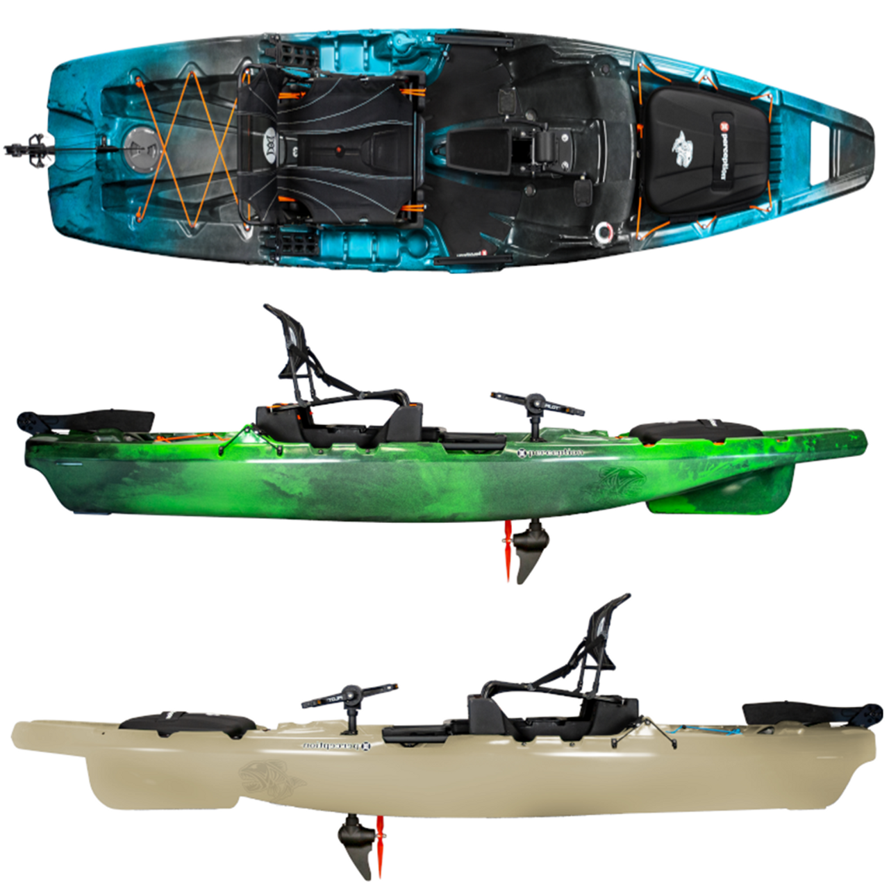 Ergonomic side carrying handles and a molded-in handle at the stern make transporting this rugged pedal kayak easier. The side handles also double as gear tracks, allowing for greater customization.