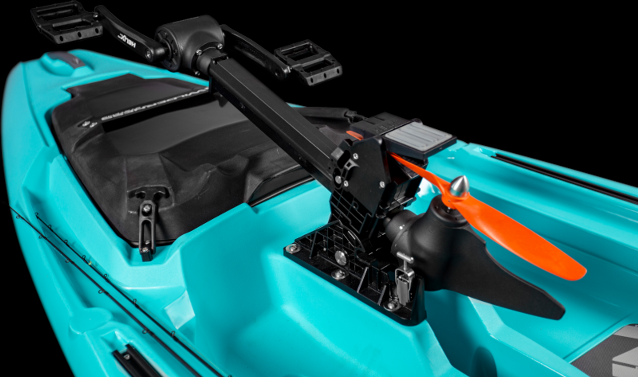 The Recon 120 HD model comes standard with the tried-and-true, easy-deploy Helix PDâ„¢ Pedal Drive system. With instant forward/reverse, on-a-dime turning, and a lab tested gear ratio for smooth all-day pedaling, the Recon 120 HD packs more performance than other pedal driven kayaks in its class. The Recon 120 comes ready to paddle, or easily install the Helix PD Pedal Drive midship or add an aftermarket motor with a direct-to-boat stern mounting interface.