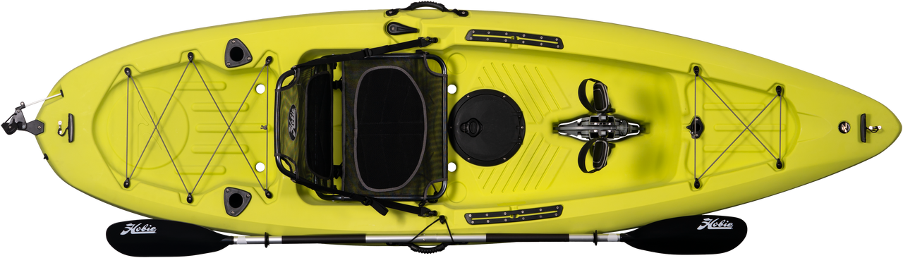Introducing the 2022 Mirage Passport 12 R pedal fishing kayak. Powered by the patented MirageDrive GT pedal propulsion system with Kick-Up Fin technology, the Passport 12 R is versatile enough to take you wherever the fish are biting on your next kayak fishing adventure. With an all-new rotomolded hull construction, the Passport 12 R has a sleek aesthetic, delivering ultimate stability while still maintaining performance and speed on the water. It comes loaded with fish features that guarantee an unforgettable kayak fishing experience. Easily install a fishfinder and mount a shallow water anchor of your choosing with a transducer cavity and scupper and Power-Pole® Micro bracket indent. Designed for long days on the water, the breathable mesh seat provides maximum comfort. Additional features include loads of bow and stern storage with Bungee, 8″ Twist-n-Seal hatch, two fishing rod holders, two accessory tracks to customize your yak and under seat and gunnel tackle storage. Upgrade with a sail kit or bimini sunshade with the vertical accessory tube. Comes standard with a two-piece aluminum paddle.