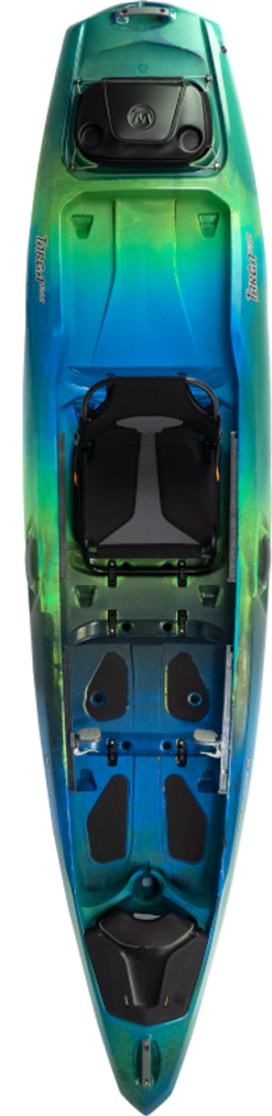 The open design and intuitive multiple position seat systems allow for an optimal experience on the water with friends, family, pets, or even by yourself. The camp-style seat system delivers maximum comfort, and the elevated stern seat provides greater visibility when paddling. This kayak is loaded from front to back. The hooded bow storage area keeps your belongings accessible and sheds water to help keep things dry. Integrated into the rear deck is a portable insulated cooler that keeps food and drinks cold for hours on end.