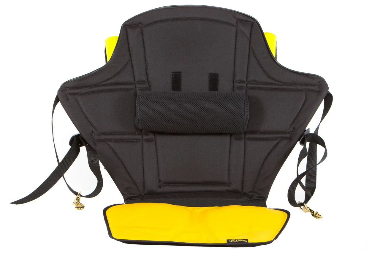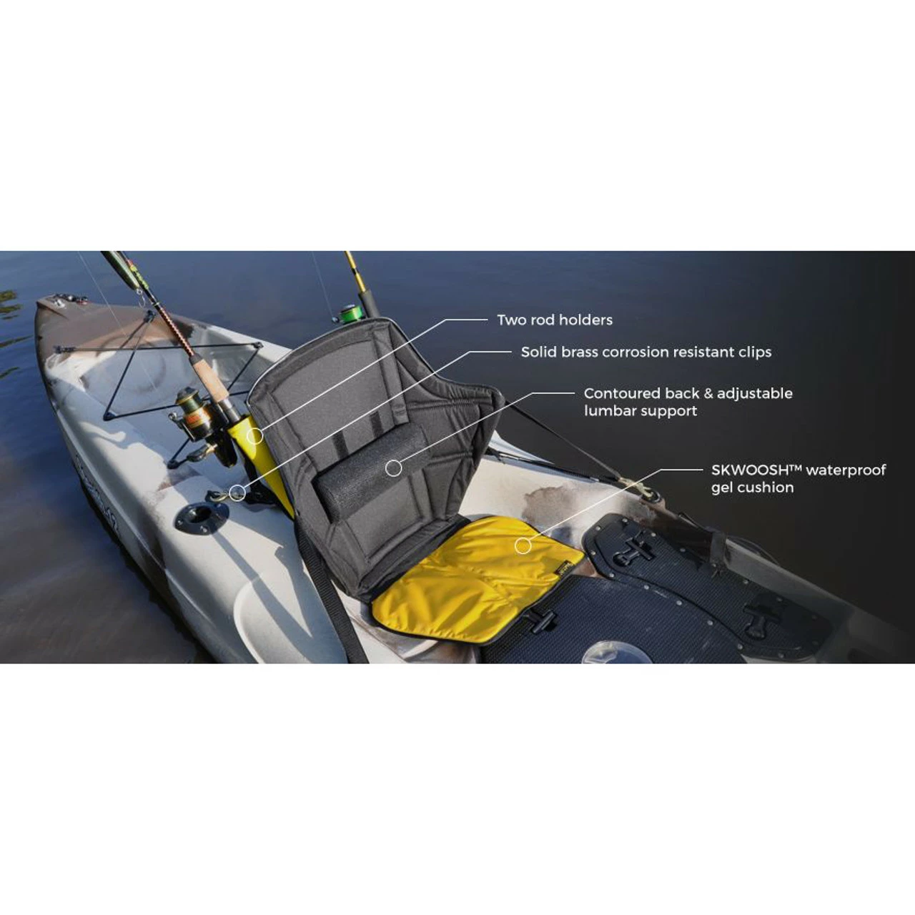 The Big Catch High Back Kayak Fishing Seat with Lumbar Support from Skwoosh is built with an emphasis on comfort. The seat cushion is made with Skwoosh’s patented TekPad® gel technology in the seat cushion, while an adjustable lumbar support pad can be placed where your lower back needs it most. A lattice pocket on the back holds larger items in a handy location. Two rod holders keep your fishing rods handy and at the ready. A great choice of kayak fishing seat for the angler who likes to spend hours on the water.