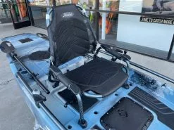 Truly the Ultimate Fishing Machine. The Pro Angler 14 with the MirageDrive 360 and Kick-Up Fins delivers power in every direction for unprecedented maneuverability and control. Staying on top of the fish has never been easier. Everything elite anglers are looking for in a fishing kayak – total control, power, stability, performance, stealth, comfort and feature rich. It’s wide, rock-solid standing platform comes decked out with noise reducing EVA traction pads. Explore wherever you want to go with the all-new Kick-Up fins that automatically retract upon impact. Ultra-comfortable, adjustable Vantage ST seat, dual steering, Guardian Retractable Transducer Shield and an extra-wide beam allows for long days on the water. Mount your rod holders and electronics on the 12-sided Hobie H-Rail bars.