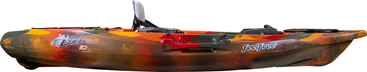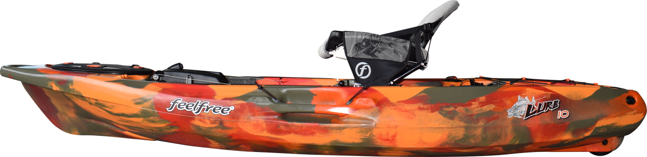 The Lure 10 v2 features a variety of unique patented comfort features seen on the Lure series including the removable multi-height adjustable Gravity Seat, Wheel in the Keel and molded in handles. The Lure 10 now features an Electronics and Sonar Pod and is Beaver Tail Rudder ready. Like most Feelfree kayaks, the Lure 10 comes with everything you need to get out and go fish including Uni-Track rails for unlimited outfitting configurations, flush mounted rod holders and a large tankwell to store your fishing gear or a cooler. The Lure’s super-stable 34” wide hull paired with a padded standing platform gives you the option to paddle or cast in either the sitting or standing position regardless of where you take it — this kayak fears no water.