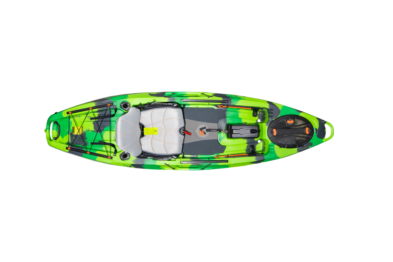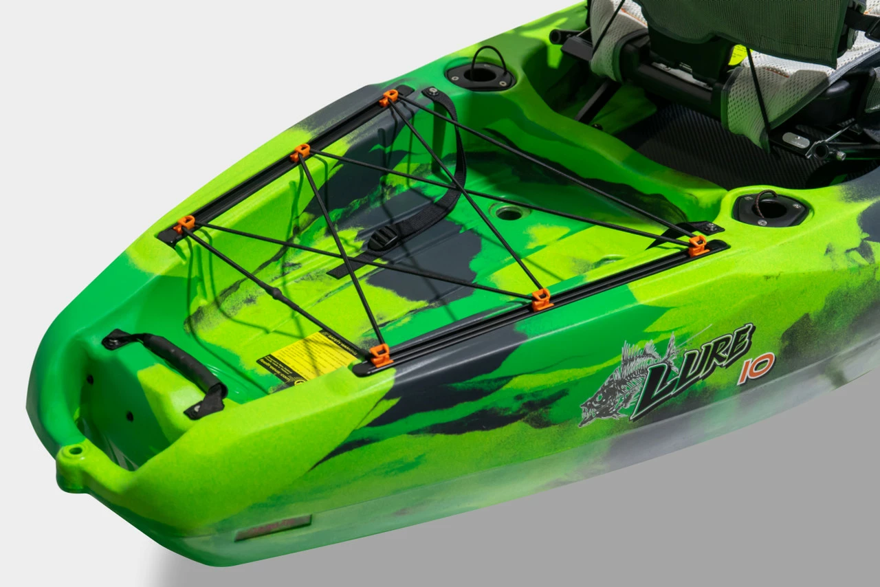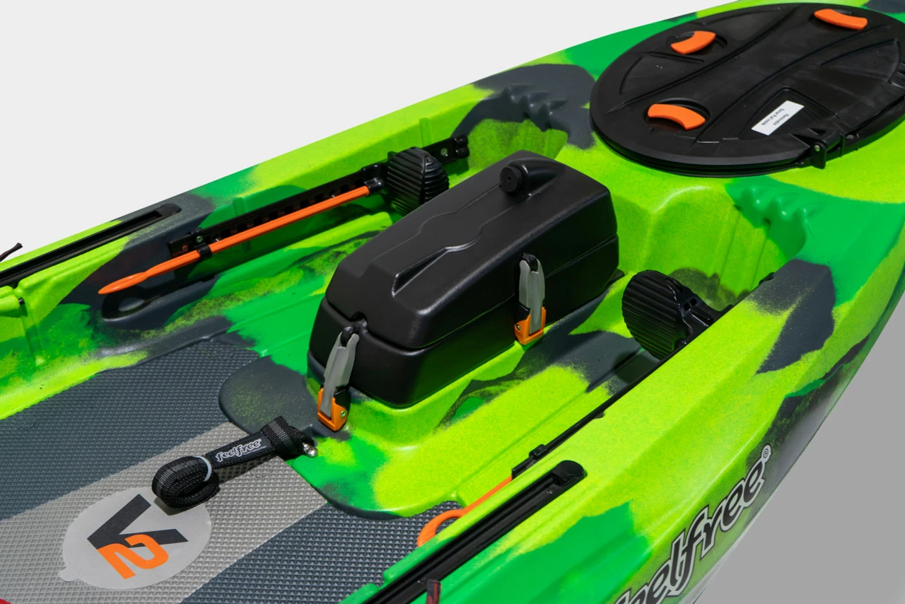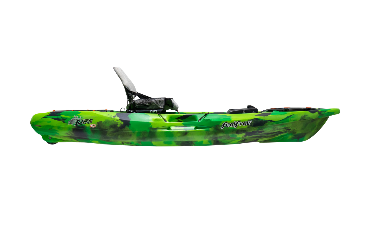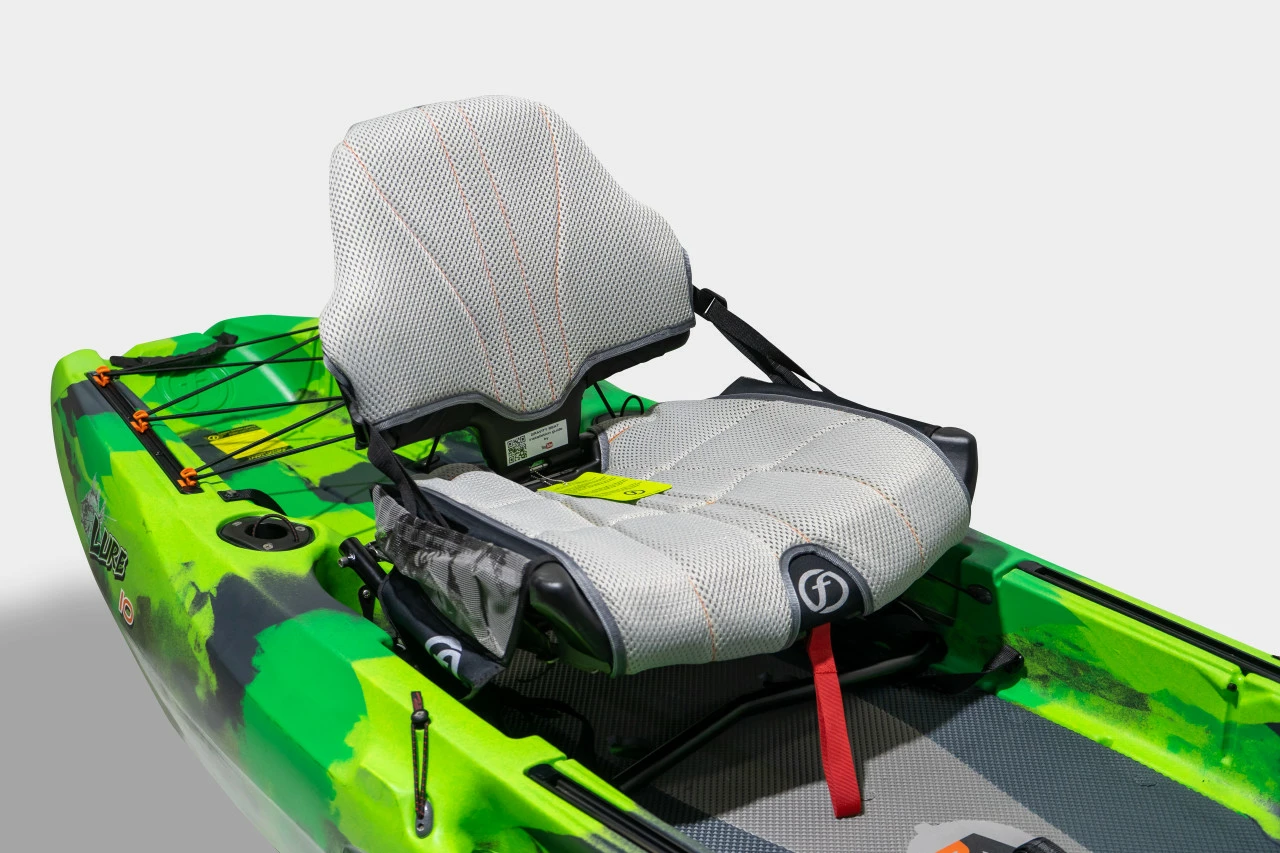 The Lure 10 v2 features a variety of unique patented comfort features seen on the Lure series including the removable multi-height adjustable Gravity Seat, Wheel in the Keel and molded in handles. The Lure 10 now features an Electronics and Sonar Pod and is Beaver Tail Rudder ready. Like most Feelfree kayaks, the Lure 10 comes with everything you need to get out and go fish including Uni-Track rails for unlimited outfitting configurations, flush mounted rod holders and a large tankwell to store your fishing gear or a cooler. The Lure’s super-stable 34” wide hull paired with a padded standing platform gives you the option to paddle or cast in either the sitting or standing position regardless of where you take it — this kayak fears no water.