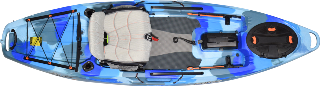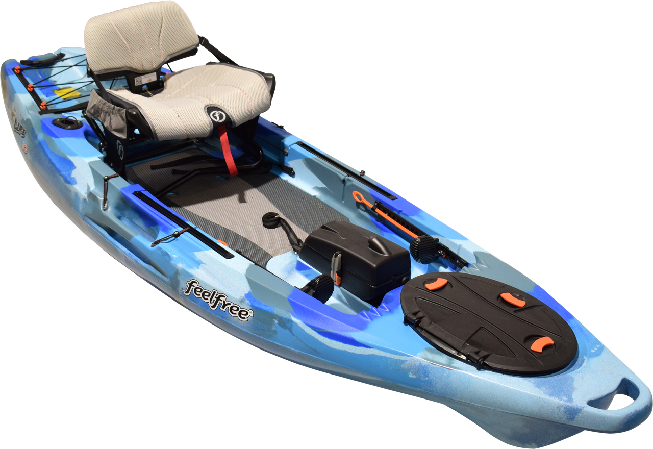 The Lure 10 v2 features a variety of unique patented comfort features seen on the Lure series including the removable multi-height adjustable Gravity Seat, Wheel in the Keel and molded in handles. The Lure 10 now features an Electronics and Sonar Pod and is Beaver Tail Rudder ready. Like most Feelfree kayaks, the Lure 10 comes with everything you need to get out and go fish including Uni-Track rails for unlimited outfitting configurations, flush mounted rod holders and a large tankwell to store your fishing gear or a cooler. The Lureβs super-stable 34β wide hull paired with a padded standing platform gives you the option to paddle or cast in either the sitting or standing position regardless of where you take it β this kayak fears no water.