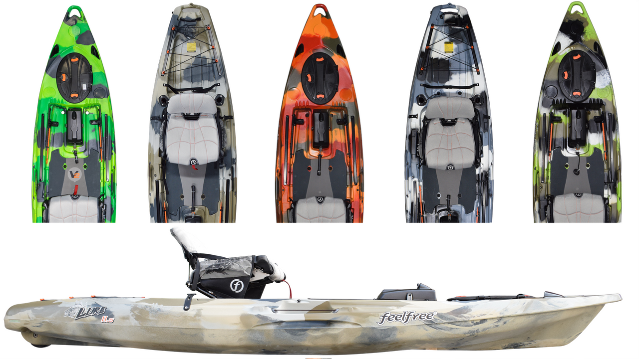 The Lure 11.5 offers the perfect balance of comfort, deck space, mobility and stability – not too long or too short, but still fully capable for those longer distances and days on rivers, lakes and oceans and small waters alike. This kayak is made for complete customization with features such as the removable sonar & electronics pod for easy fish finder and transducer installation, UNI-Track accessory mounting system and is rudder ready. Additionally, the kayak is Overdrive and Motordrive compatible, meaning you can install an Overdrive Pedal unit with the 8-Ball Steering system and add the Motordrive for the best in hands free propulsion! The kayak also comes with a variety of unique patented comfort features seen on the Lure series including the removable multi-height adjustable Gravity Seat, our the famous Wheel in the Keel and sturdy molded in handles. Like most Feelfree kayaks, the Lure 11.5 comes with everything you need to get out and go fish including the Uni-Track system for unlimited outfitting configurations, flush mounted rod holders and a large tankwell to store your fishing gear or a cooler. The Lure’s super-stable 34” wide hull paired with a padded standing platform gives you the option to paddle or cast in either the sitting or standing position. Whether fishing inland waters or wide open oceans — this kayak fears no water.