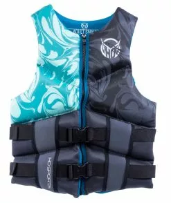 The Mission vest is a stylish, comfortable fitting vest that provides the flexibility you want for all water sports and is certified as a Harmonized Approval Personal Flotation Device. Itβs 3 dimensional cut provides incredibly sleek fit, while independently segmented panels give seemingly endless hinge points for unmatched flexibility and performance. With superior drainability, the Mission quickly releases water to keep the skier lighter and drier. The strategically placed belt keepers allows the user to keep straps tucked away from limbs. Oversized armholes and a front zip entry allow for maximum maneuverability and reach and easy entry.