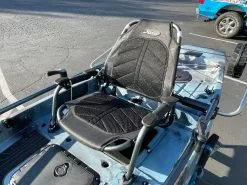 Truly the Ultimate Fishing Machine. The Pro Angler 14 with the MirageDrive 360 and Kick-Up Fins delivers power in every direction for unprecedented maneuverability and control. Staying on top of the fish has never been easier. Everything elite anglers are looking for in a fishing kayak – total control, power, stability, performance, stealth, comfort and feature rich. It’s wide, rock-solid standing platform comes decked out with noise reducing EVA traction pads. Explore wherever you want to go with the all-new Kick-Up fins that automatically retract upon impact. Ultra-comfortable, adjustable Vantage ST seat, dual steering, Guardian Retractable Transducer Shield and an extra-wide beam allows for long days on the water. Mount your rod holders and electronics on the 12-sided Hobie H-Rail bars.