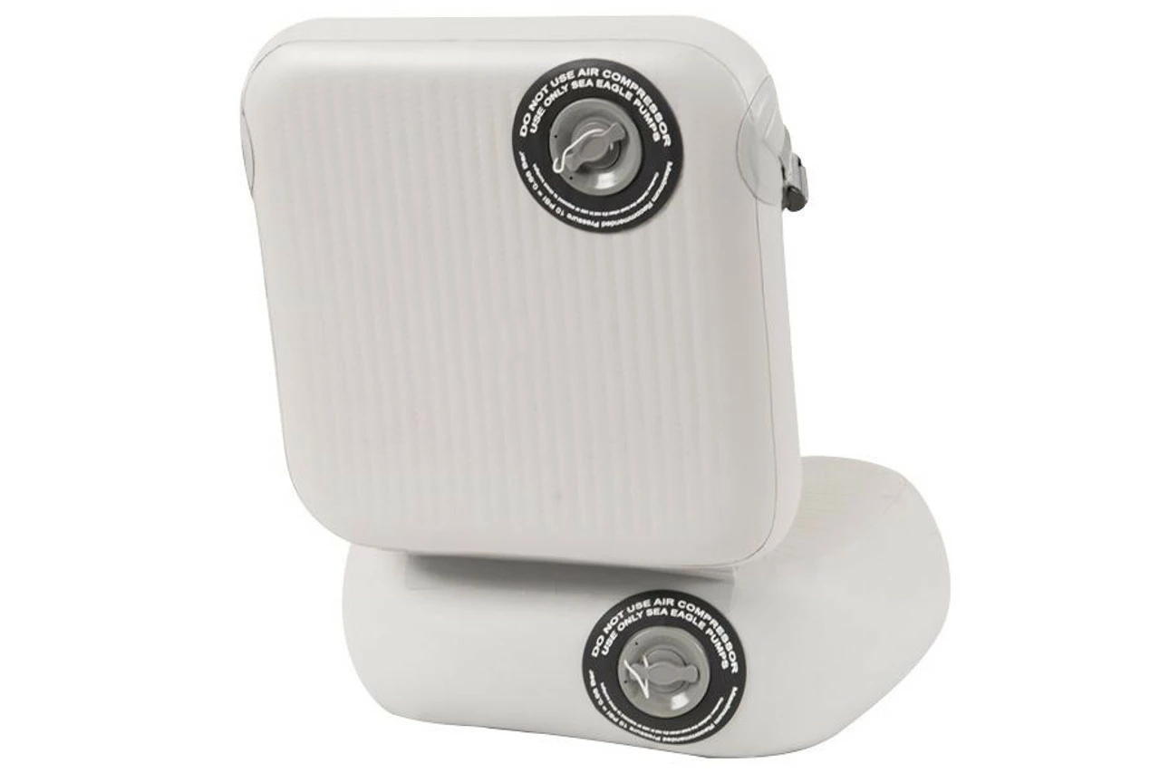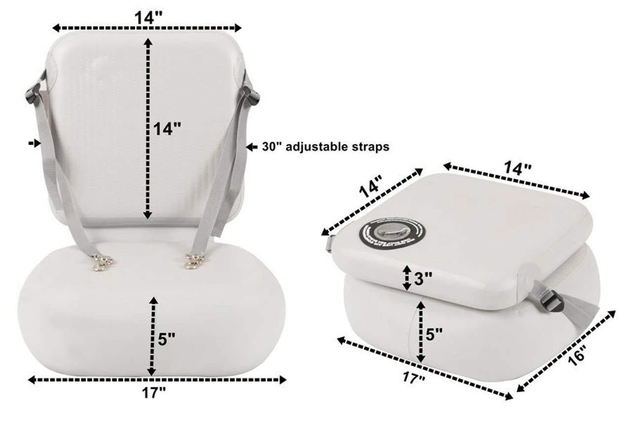 The Inflatable Canoe Seat with straps from Sea Eagle is designed to provide support and comfort for the Travel Canoe. Like the Travel Canoe, it has two separate air chambers made of drop stitch technology allowing to be inflated to 3psi for rigid support or to a lower psi for a softer ride. The back rest folds down so you can sit a bit higher. The seat base and backrest are made with two separate and independent chambers so that you can adjust both independently as well as adjusting the angle of the backrest with our adjustable quick release attachment straps.