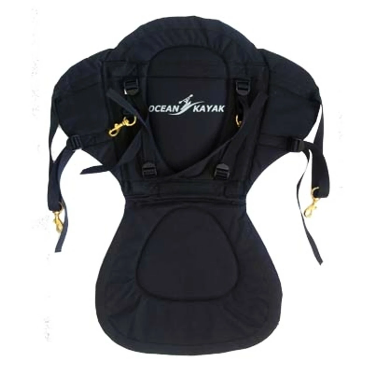 The Comfort Plus Kayak Seat from Ocean Kayak is a step up from the Comfort Plus kayak seat, with an exra 2.5 inches of seat back height and a 1 inch thick oval cushioned pad sewn into the seat back, covered with mesh fabric to provide a built-in ventilation system. This seat should fit on any sit-on-top kayak. Forward and rear straps with triglides allow for full adjustability and solid brass clips with stainless steel springs make attachment a breeze. Constructed with durable, UV-resistant nylon with reinforced stays for long-lasting seat construction. Reflective logos that glow after exposure to sunlight help you spot this seat in the dark. Comes in black.