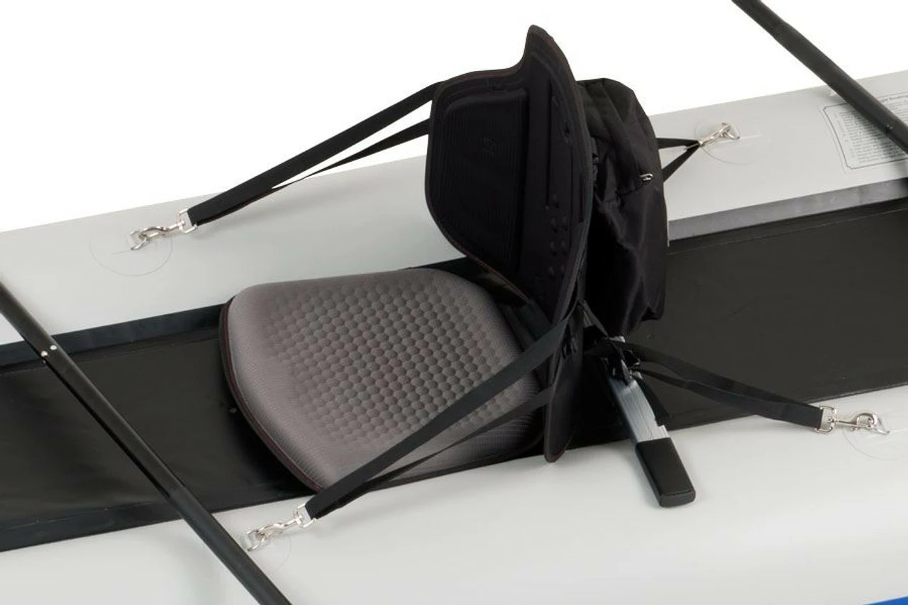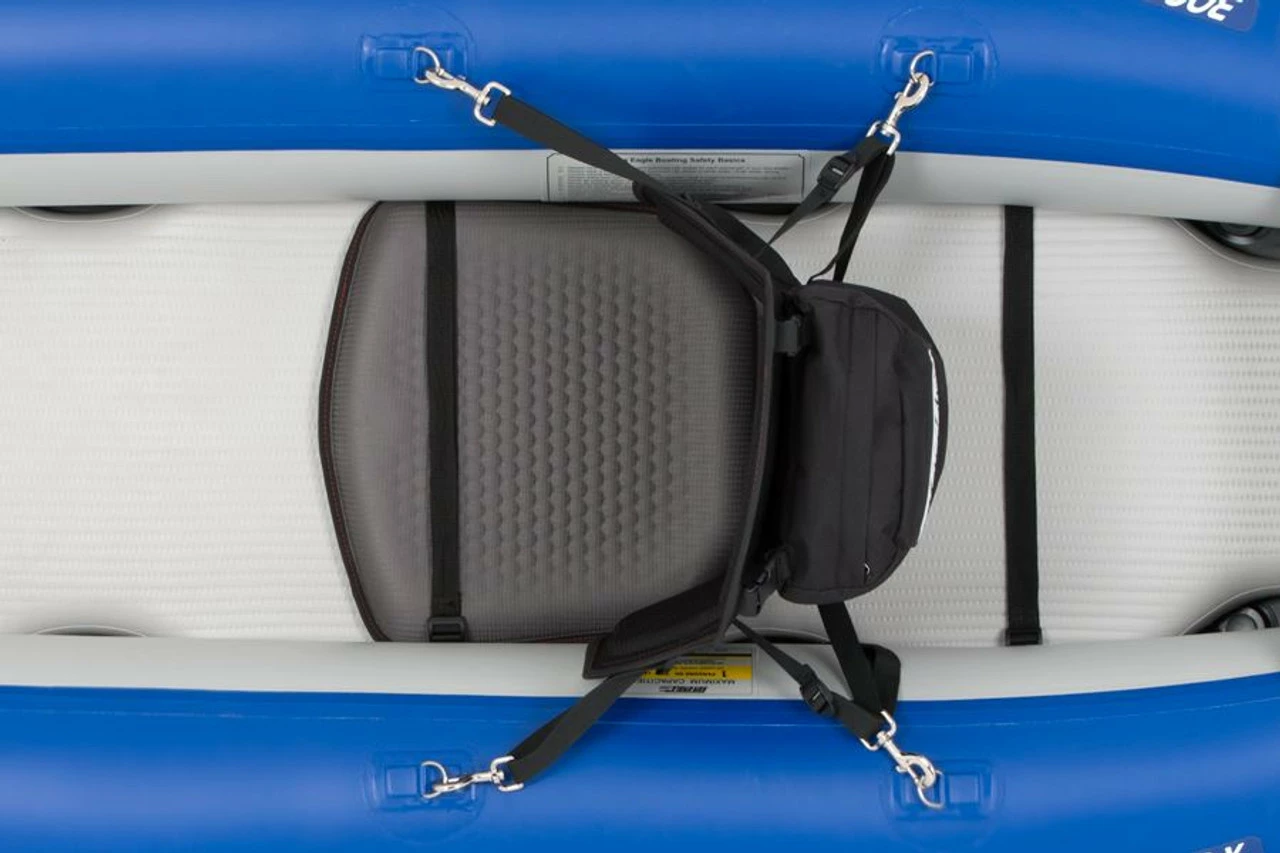 The Tall Back Kayak Seat from Sea Eagle Tall Back Kayak Seat latches securely to the d-rings on many of our Sea Eagle hulls. Removable zippered rear pouch for storage. Made of thermal molded foam. Provides great back support with an 19″ high backrest. Great for any outing. Lightweight and durable. The molded foam construction gives you a low sitting position to for maximum stability in rough whitewater and excellent back support. Only weighs 2 lbs..