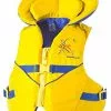 Routinely inflates upon immersion in water or when the wearer pulls the “jerk to inflate” deal with